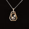 A sparkling pear-shaped diamond solitaire sits in a wondrous drop setting on this brightly polished 18k two-tone gold diamond pendant. Scintillating round brilliant cut diamonds adorn the outer rim of this enchanting anniversary diamond necklace, creating a graduated double halo. A diamond-studded invisible bail and sturdy chain make this pretty rose and white gold necklace ready for wear.