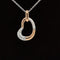 Celebrate your love with this gorgeous 18k rose gold diamond love knot pendant fashioned into an concentric Art Deco inspired design. Glittering diamonds sit nestled in the front and on the oblong bail, giving it an ultra-glam appearance. A shiny 18k white gold chain accompanies this pendant, finished with a secure clasp.