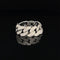 This gorgeous 18k white gold diamond ring exudes vintage inspiration with its decadent filigree crown design, fit for any luxurious style queen. A pear-shaped diamond and marquise diamond prong set in the middle complemented by rows of round brilliant cut diamonds pave set on the split band.