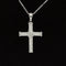 This Celtic Cross necklace sparkles with a blanket of round brilliant cut diamonds pave set on the front, creating a gorgeous glitter that brings out the striking design. This stunning Cross is accompanied by a sturdy rolo chain threaded through the invisible bail on the back, giving this diamond pendant the illusion it is floating along the collarbone when worn.