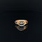 This gorgeous, brightly polished 18k rose gold diamond promise or engagement fashion ring features sparkling round brilliant cut diamonds pave set in an oval cluster halo in the center. Twisted strands of round brilliant cut diamonds adorn the top of the band, finished with diamond solitaire stones nestled in between.