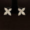 These gorgeous 18k two-tone gold earrings feature oval cut fancy yellow diamonds secured in yellow gold prong settings. Marquise and round brilliant cut white diamonds prong set around each center stone add a fire-flower design. Round brilliant cut diamonds prong set on the huggie hoops finish the look, all in a rich white gold shine.