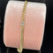 Exude endless elegance with this airy 18k yellow gold antique style bracelet, finely crafted in a high shine. A four-prong set oval cut blue sapphire sits between two delicate cable chains surrounded by a cluster halo of round brilliant cut diamonds. Jump rings on each side of the center design give way to a single chain secured by a lobster clasp and extension chain.