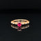 Add vibrancy to your bridal ring set with this stunning 18k white gold ring. Two rows of prong set oval cut rich red rubies adorn the top, complemented by sparkling pave-prong set round brilliant cut diamonds, tapering into a slim band on the bottom.