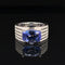This 18k white gold cocktail ring features shimmering baguette and round brilliant cut diamonds pave-prong and invisible set in clusters, giving this statement ring vintage inspiration. Oval cut rubies prong set around the exterior of the top create vibrant petals, bringing this floral design to life.