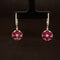 These gorgeous 18k white gold vintage-inspired earrings feature pear-shaped rubies secured in three-prong settings. Glittering round brilliant cut diamonds pave-prong set in dazzling halo clusters adds fire. La pousette butterfly backs keep these formal studs secure, making them effortless to place on and remove.