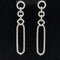 These gorgeous diamond 18k white gold hoop earrings feature a sparkling row of round brilliant cut diamonds prong set in the center of a fanciful filigree pattern. Smaller diamond accents frame each side of the earring, giving these stunning hoops added fire and prestige. Unique and