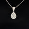 This petite, brightly polished 18k white gold sapphire and diamond pendant is the perfect gift to give for any birthday or anniversary occasion. An oval cut blue sapphire is prong set in the center of a slender open halo, finished with sparkling round brilliant cut diamond accents that dot the front.