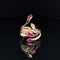 Intense red rubies are beautifully placed in tulip bezel settings atop slender strands on this brightly polished 18k yellow and white gold garden ring. Sparkling round brilliant cut diamond accents are elegantly sprinkled on this luxurious ring that is the ultimate anniversary gift or birthday present for that special someone in mind.