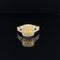 This extraordinary 18k yellow and white gold multi-diamond ring features a radiant cut intense fancy yellow diamond in the center, secured in a rich yellow gold prong setting. Scintillating round brilliant cut white diamonds are prong set around this center stone in a spectacular halo frame and down the smooth, flat-edged band. Perfect for those who appreciate the incredible luxury and color that diamonds showcase.